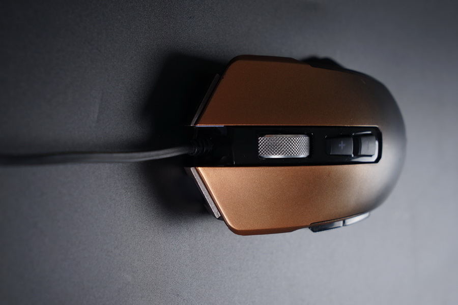 淬,也代表着工匠精神的玩命死磕。Redragon虹龙G10游戏鼠标,金属质感十足,鼠标滚轮和鼠标底部都采用了阳极氧化工艺铝合金。